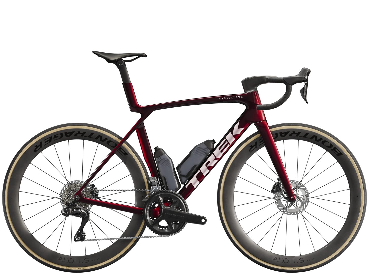 Un telaio incredibilmente leggero realizzato con il nostro carbonio OCLV 900 Series di altissimo livello, tubi aerodinamici, tecnologia di comfort IsoFlow e sistema borracce/portaborraccia RSL Aero per risparmiare Watt. Un gruppo Shimano Ultegra Di2 2x12 completamente personalizzabile per cambiate velocissime. Forcellino cambio universale sostituibile ovunque. Inoltre, ruote in carbonio tubeless Bontrager Aeolus Pro 51 e manubrio/attacco monopezzo Trek Aero RSL.